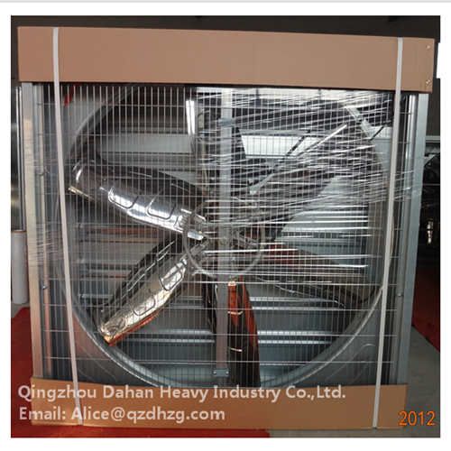 The negative pressure fan exports the air to make the indoor air pressure drop, the indoor air turns thin, the animal husbandry characteristic forms a negative pressure area, the air because of the barometric difference compensates to flow into the room. In the practical application of the industrial workshop, The negative pressure fan is concentrated on the side of the workshop, and the air inlet is on the other side of the workshop. The air flows from the intake port to the negative pressure fan to form a convection blower. During this process, doors and windows close to the negative pressure fan are closed and forced air flows into the workshop by the door and window of the intake port. The air is lined up and orderly from the air inlet into the workshop, flowing through the workshop, and out of the workshop by the negative pressure fan. The ventilation rate is as high as 99%. Through specific engineering design, according to the need to design ventilation rate and wind speed, any high heat, harmful gas, dust, smoke can quickly discharge workshop, any ventilation problems can be solved once and for all. The effect of ventilation can be achieved within a few seconds of starting the fan.